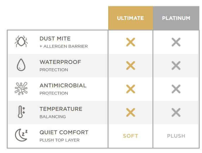 The AllerEase® Professional Ultimate Pillow is "soft" while the AllerEase® Professional Platinum Pillow is "plush" and waterproof.