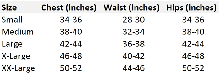 Chest: Measure around the fullest part of the chest, just under the armpits.