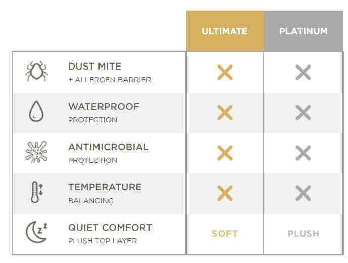 The AllerEase® Professional Ultimate Pillow is "soft" while the AllerEase® Professional Platinum Pillow is "plush" and waterproof.