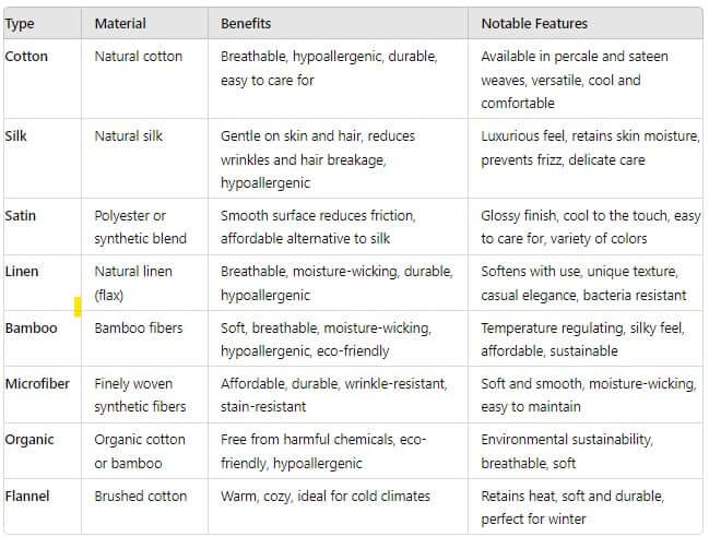Different Types of Pillowcases and their Benefits