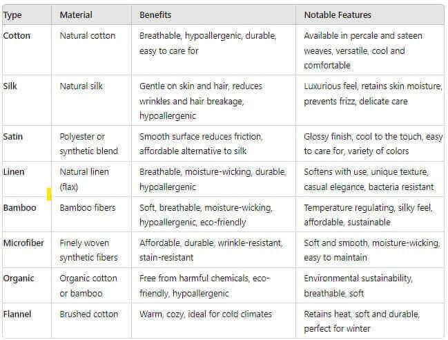 Different Types of Pillowcases and their Benefits