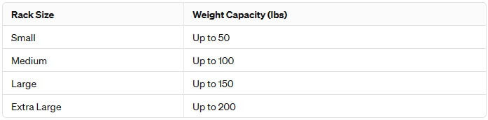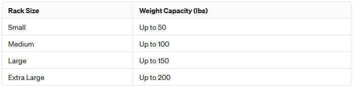 Below you will find a chart of clothing rack size and the weight they can typically hold: