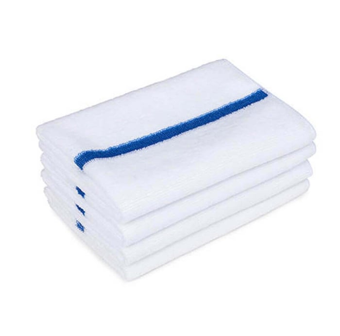 Bar Mop Towels go by various names, like bar mop towel, bar rags, bar mop, 10s cloth, or janitorial cloths. They're an essential towel used in restaurants, cafes, and other hospitality industry settings where cleanliness matters. They are absorbent and durable which makes them a well-loved accessory. Typically made of cotton, or terry cloth, bar towels have small loops woven into the fabric, with dense fibers that make them much more absorbent than everyday dish towels. Bar towels are usually made of 100% cotton and usually range in weights from 20 oz to 36 oz. They can be a solid white, or white with a center colored stripe, so they are easy to clean and provide a uniform look. Restaurants often use bar mops with stripes in order to color-code for different applications.